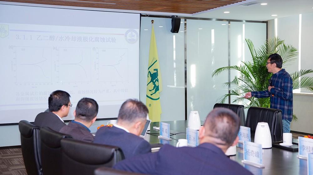 青島康普頓科技股份有限公司技術總監蔣威先生針對于該項目驗證驗收工作進行了匯報,經市售產品與研發成果的對比分析,研發成果在金屬腐蝕保護、抗泡沫性能等方面優于市售常見產品,同時,權威第三方檢測機構SGS的檢驗結果表明,該項目研發成果滿足并超越GB 29743《機動車發動機冷卻液》標準的要求。